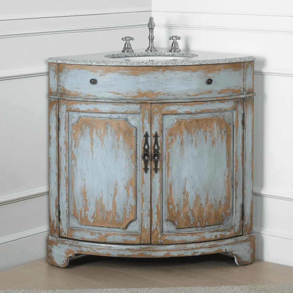 Benton Collection 24" Distressed Gray Corner Bathroom Vanity with White Quartz Top